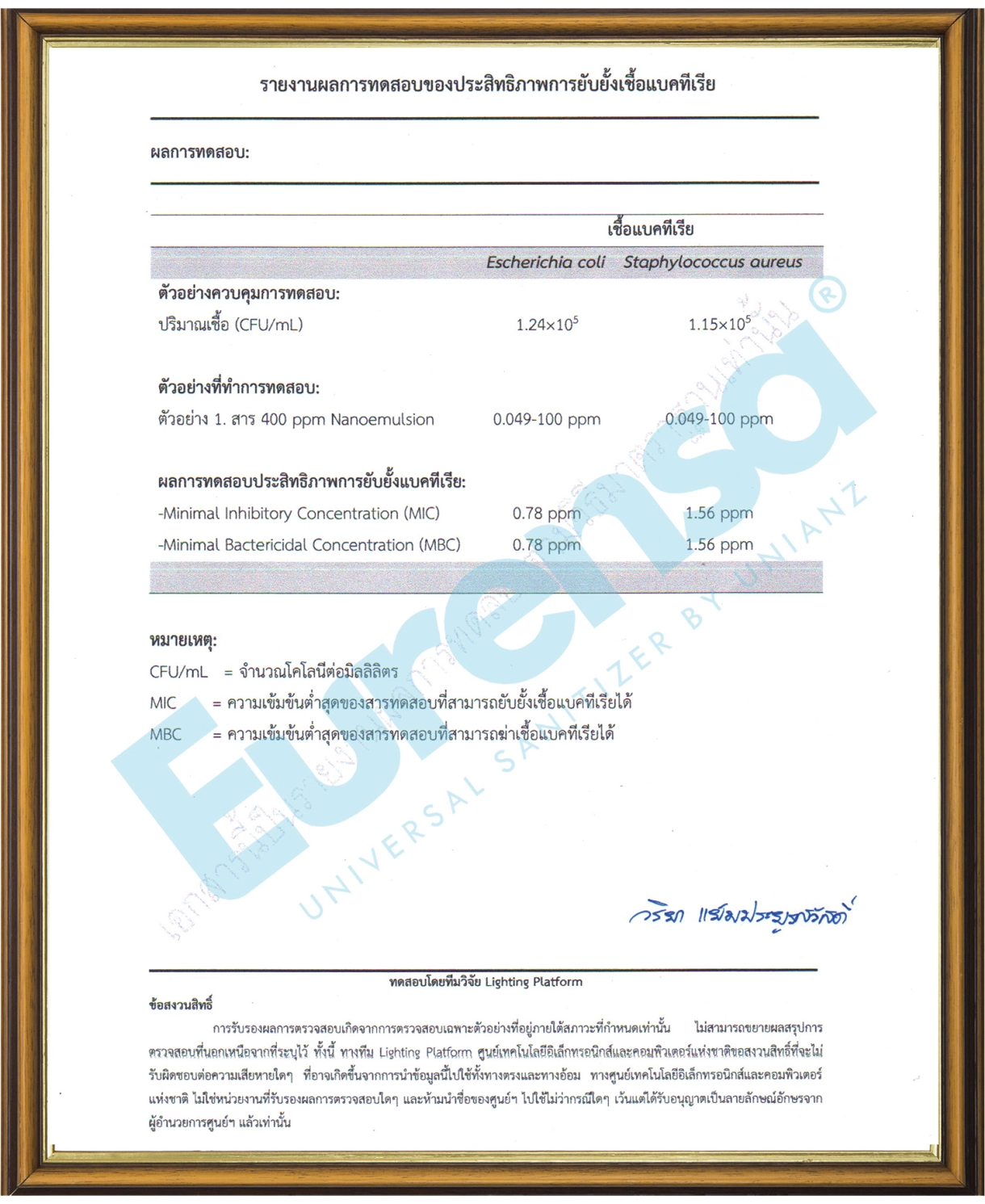 ประสบการณ์กว่า 30 ปีที่อยู่ในวงการวิจัยและการฆ่าเชื้อ ที่แสดงออกมาในรูปแบบของผลงานวิจัยต่างๆของทีมวิจัย และพัฒนาภายในบริษัท ไม่ว่าจะเป็นบทความทางวิชาการทั้ง ในไทยและต่างประเทศ รวมไปถึงสิทธิบัตรและทุนสนับสนุน การวิจัยผ่านการรับรองโดยศูนย์ความเป็นเลิศด้านวิทยาศาสตร (TCEL) อีกทั้งผลิตภัณฑ์ที่ผ่านการทดสอบการฆ่าเชื้อตาม มาตรฐานสากลที่ได้รับการรับรองจากสํานักงานพัฒนา วิทยาศาสตร์และเทคโนโลยีแห่งชาติ (สวทช.) จึงมั่นใจได้ ว่าผลิตภัณฑ์และบริการของเราถูกคิดค้นและรับประกัน คุณภาพจากผู้เชี่ยวชาญเฉพาะด้านโดยตรงรวมถึง มาตรฐานระดับสากลที่สามารถตรวจสอบได้